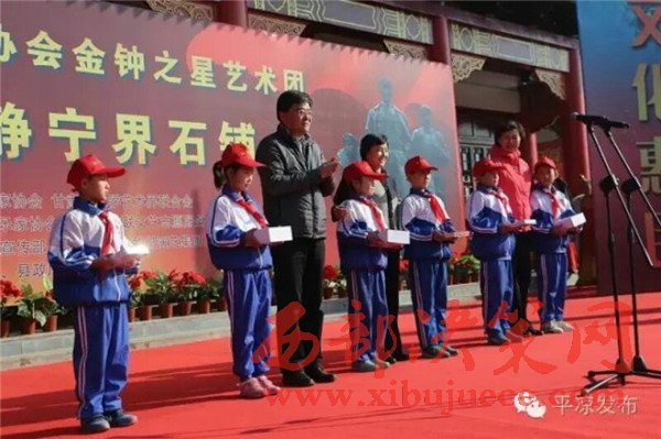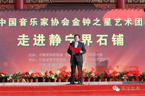 11月3日,在全国上下认真学习贯彻党的十八届六中全会精神、隆重纪念红军长征胜利80周年之际,由中国音乐家协会、甘肃省文联主办,甘肃省音乐家协会、甘肃省文联文艺志愿者服务团、平凉市委宣传部、平凉市文联承办,静宁县委、县政府协办的“长征精神代代传——中国音协金钟之星艺术团‘送欢乐·下基层’慰问演出活动”在静宁县界石铺红军长征毛泽东旧居纪念馆演出。
