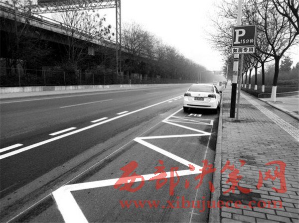 记者现场看到,如厕停车位大多紧邻公厕,设置在道沿下的路边,白色的波折线,前方设置一个或两个临时停车位,停车位采用黄色起止标线,标线内写有“如厕专用”大字。紧邻停车位的路边,设有牌,停车牌上写着“15分钟”的停车时限。