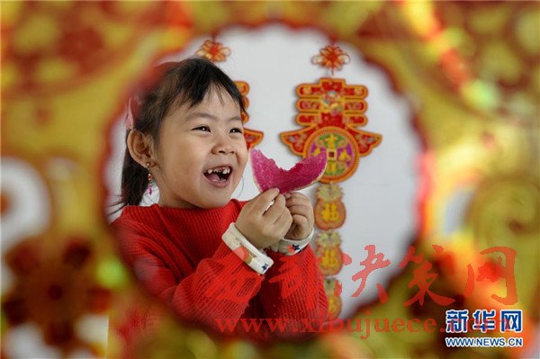 2月3日,河北省邢台市桥东区三义庙社区的孩子们在社区儿童娱乐室吃萝卜“咬春”。
