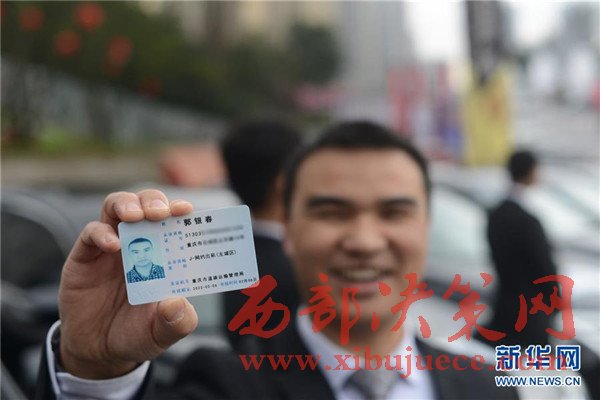 2月7日,驾驶员郭银春展示自己的网络预约出租汽车驾驶员证。当日,重庆市道路运输管理局发出首批网络预约出租汽车驾驶员证,64名驾驶员获得提供网约车驾驶服务的从业资格。据悉,网络预约出租汽车驾驶员证有效期为6年,从事网约车业务时,需要随身携带证件。