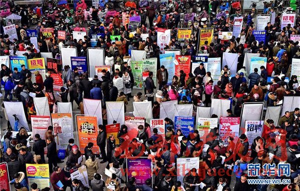 2月7日,在山东日照2017年“贺新春”大型招聘会上,求职者络绎不绝。春节假期过后,各地陆续迎来求职招聘高峰。