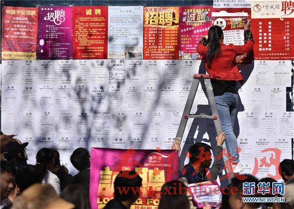 2月7日,在云南曲靖人力资源市场,一名招工负责人在张贴招聘宣传单。春节假期过后,各地陆续迎来求职招聘高峰。