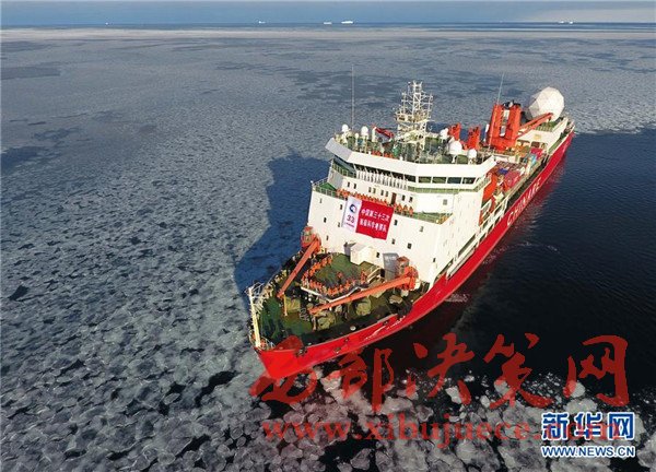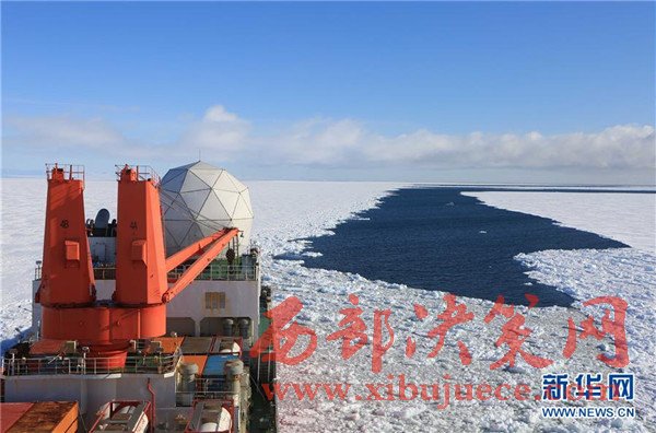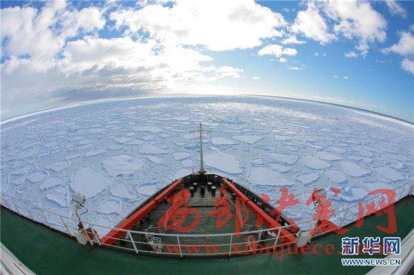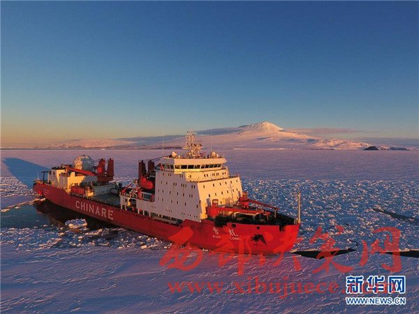 破冰前往麦克默多湾方向的“雪龙”号科考船(2月9日摄)。