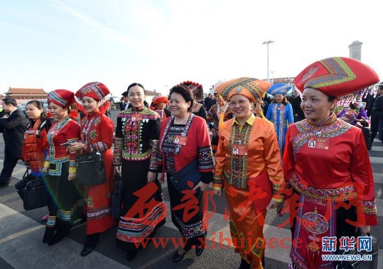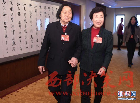 3月7日,全国人大代表申纪兰(左)和郭凤莲准备参加十二届全国人大五次会议山西代表团的会议。在两会会场内外,女代表、女委员、女工作人员、女记者在工作中尽职尽责,展现着自己的风采。