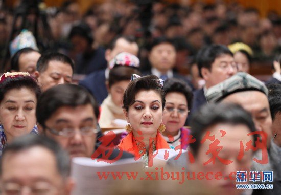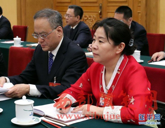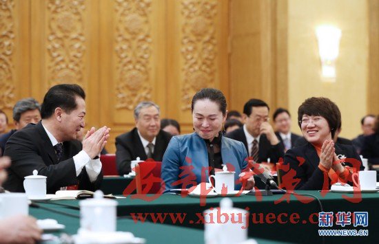 3月7日,辽宁代表团的冯玉萍代表(前中)在发言时激动不已。在两会会场内外,女代表、女委员、女工作人员、女记者在工作中尽职尽责,展现着自己的风采。