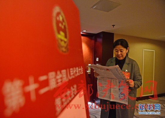 3月6日,尹清在驻地阅读报纸,关注两会新闻。当了23年教师的全国人大代表、辽宁省丹东市朝鲜族中学校长尹清,在今年两会前花了一个多月时间,跑了丹东市的5所中小学,向十几位校长和老师取经,最终转化为一份即将提交的建议:建立校园周边安全综合治理体系。尹清说:“为了写好这份建议,我一直在请教代表团里的其他代表,让他们出谋划策,就是希望建议更有针对性、可行性,履行好一名代表的职责。”