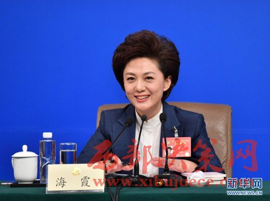 3月7日,全国政协委员海霞在北京梅地亚中心的两会新闻中心参加记者会。在两会会场内外,女代表、女委员、女工作人员、女记者在工作中尽职尽责,展现着自己的风采。