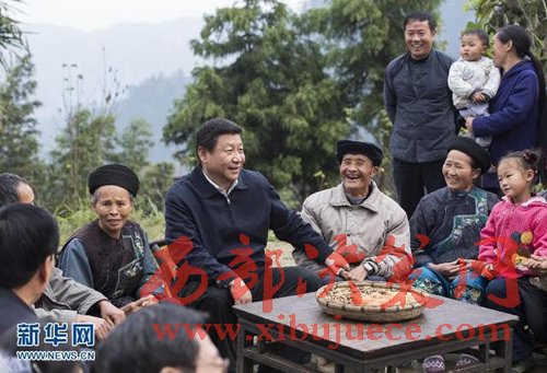 2013年11月3日至5日,中共中央总书记、国家主席、中央军委主席习近平在湖南考察。这是3日下午,习近平在湘西土家族苗族自治州花垣县排碧乡十八洞村同村干部和村民座谈。