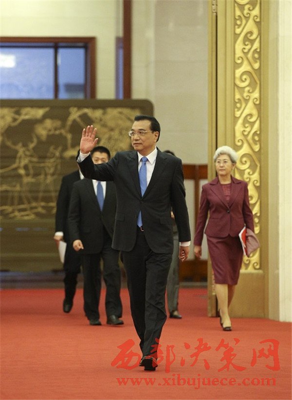 李克强步入人民大会堂三楼金色大厅会见中外记者