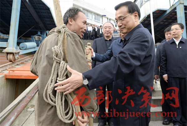 2014年4月27日,李克强在万州港码头与重庆的“棒棒”交流。