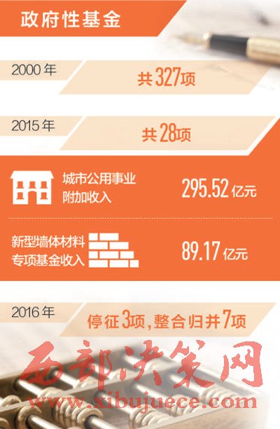 经过几轮清理规范后,到2015年,政府性基金已从2000年的327项减少到28项。2016年,国家进一步清理收费基金,停征价格调节基金等3项政府性基金,整合归并散装水泥专项资金等7项政府性基金。特别是针对小微企业,加大了降费力度。