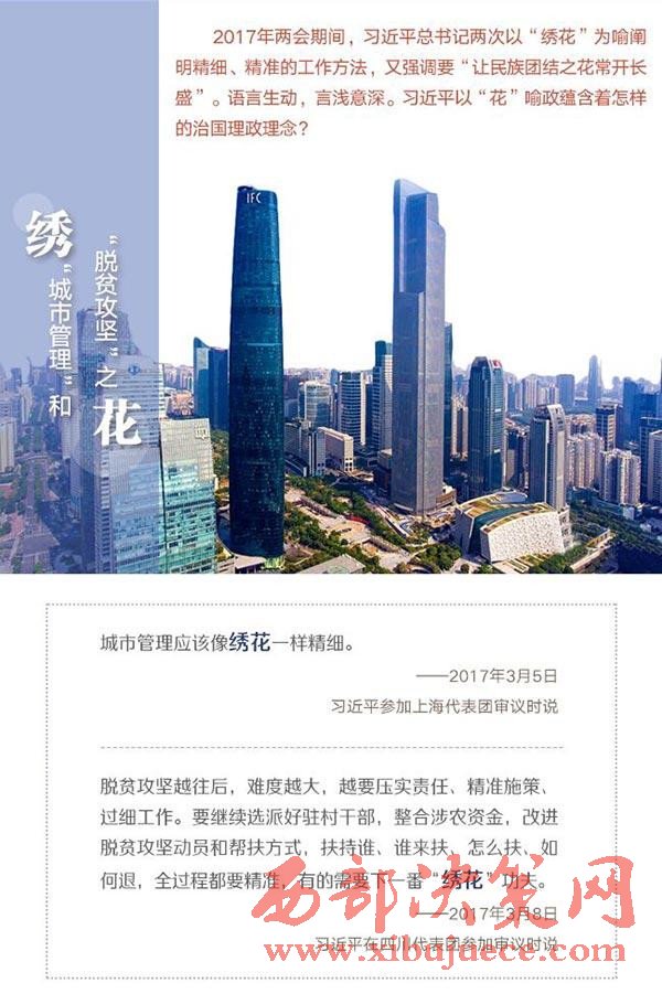 今年两会,习近平两次谈到“绣花”。绣的什么花?