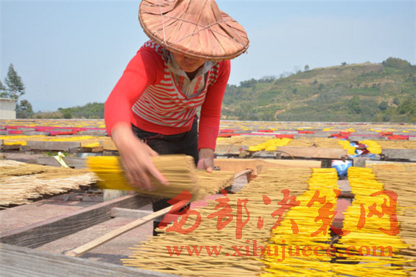 泉州永春县一家制香厂员工在晒香。