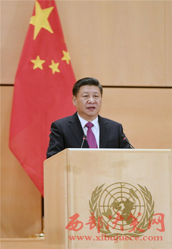 2017年1月18日,国家主席习近平在瑞士日内瓦万国宫出席“共商共筑人类命运共同体”高级别会议,并发表题为《共同构建人类命运共同体》的主旨演讲。(记者 饶爱民 摄)