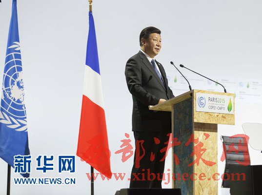 2015年11月30日,国家主席习近平在巴黎出席气候变化巴黎大会开幕式并发表题为《携手构建合作共赢、公平合理的气候变化治理机制》的重要讲话。(记者 黄敬文 摄)