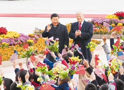 11月9日,国家主席习近平在北京人民大会堂东门外广场举行欢迎仪式,欢迎美利坚合众国总统唐纳德·特朗普对中国进行国事访问。(记者 李学仁 摄)