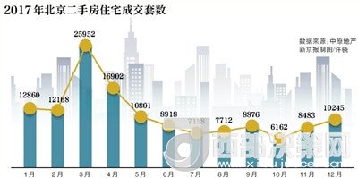 在一系列史上最严调控政策作用下,伟业我爱我家等多家机构数据显示,2017年市场份额占比超8成的北京二手房市场,交易量减半,成交价格连跌8个月,政策调控效果显著。