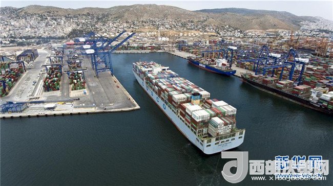 这是2017年5月7日,中远海运的货船驶出比雷埃夫斯港(比港)集装箱码头。中国远洋海运集团(中远海运)2010年10月1日正式接手希腊最大港口比港二、三号集装箱码头以来,这个枢纽工程已经成为海上丝绸之路的耀眼明珠。它不仅带动了中国企业“走出去”,也给当地经济和社会发展带来巨大收益,受到希腊各界的高度赞扬,被誉为中希两个文明古国携手共进的经典之作。(帕诺斯·托马达基斯摄)