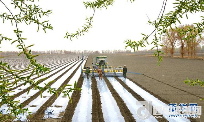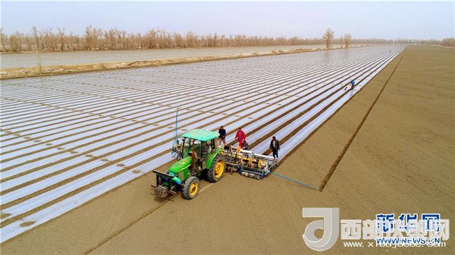 日前,位于塔里木垦区的新疆生产建设兵团职工群众开始播种棉花。据了解,塔里木垦区新疆生产建设兵团计划播种棉花300多万亩,4月上旬将完成全部播种任务。新华社发(杜炳勋 摄)