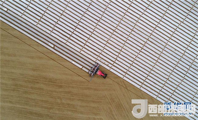 3月26日,新疆生产建设兵团第二师二十九团的大型播种机在播种棉花。