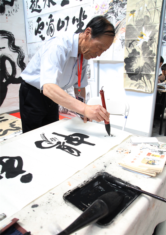 石博会邀请到来自北京、天津、河南、江苏、甘肃、沈阳及新疆等地的并在全国享负盛名的近80位书画大师现场挥墨。其中有人物画、花鸟画(走兽)、山水画、篆,隶,行,楷,草书法等作品一一呈现。为社会各界钟情于传统书画艺术的人士提供与大师近距离接触的机会,让到场的各位书画爱好者大饱眼福,众多大师的作品给人留下深刻的印象