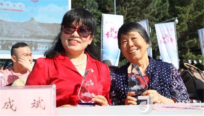 为展会提供珍贵照片并获得奖杯的成为华(成斌母亲)及张丽凤