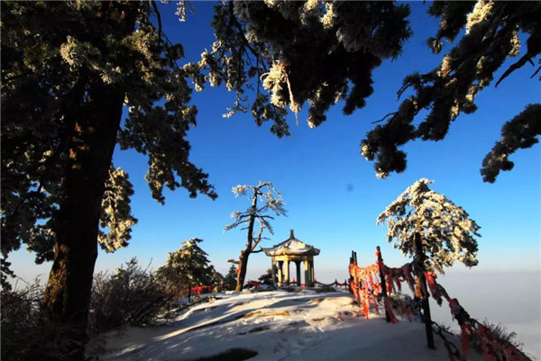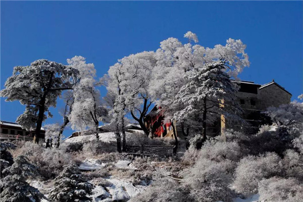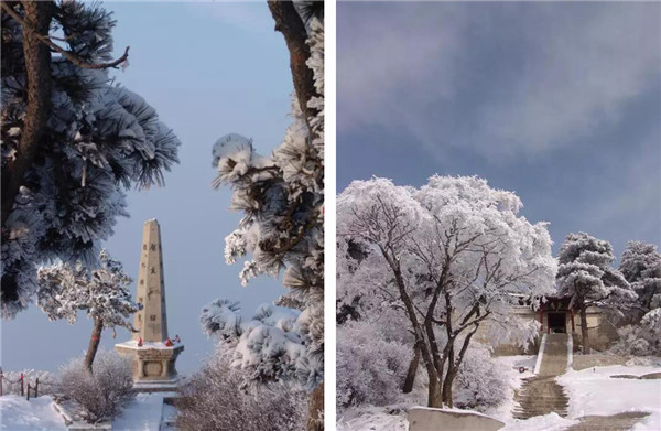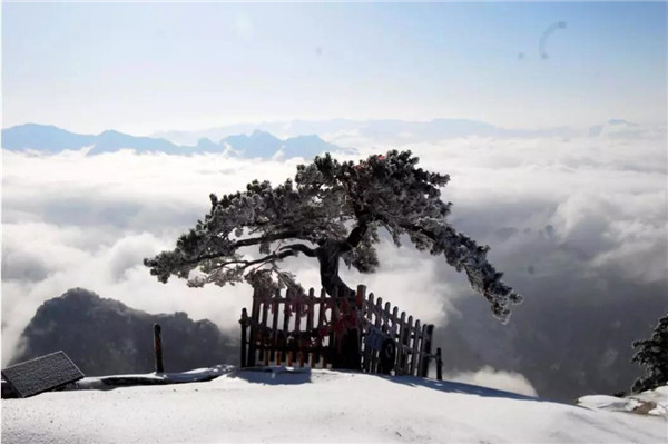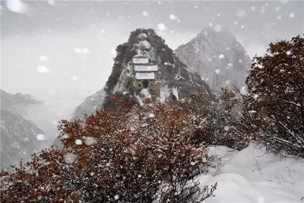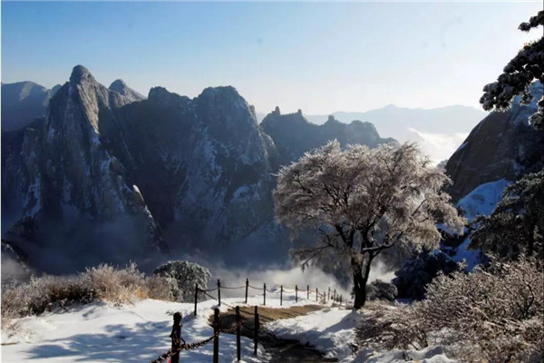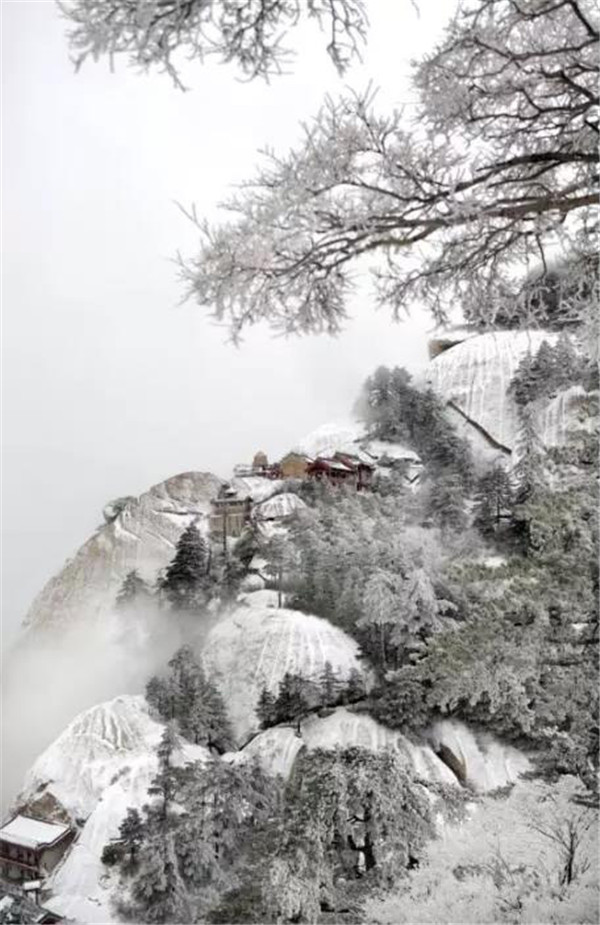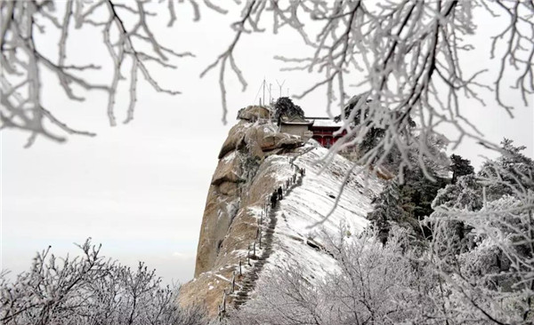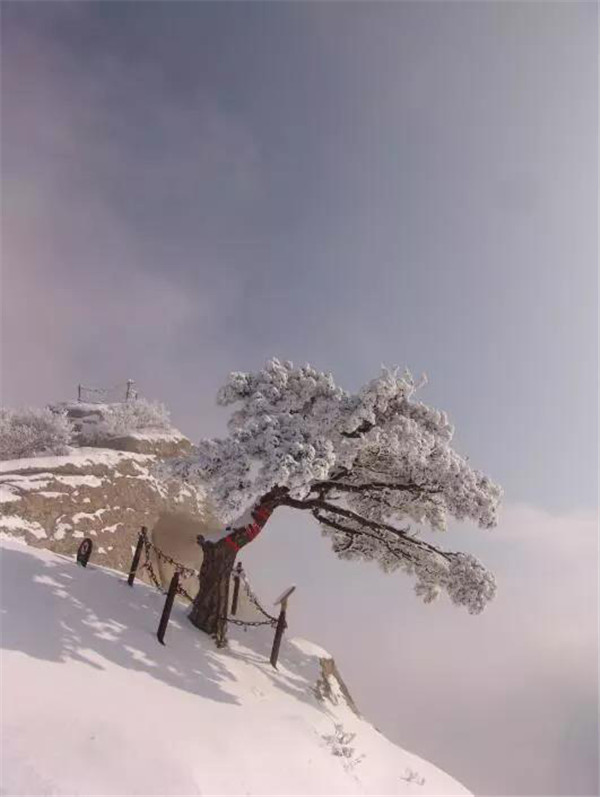 雪落华山,圣洁的雪花把华山妆扮得分外妖娆妩媚,平日陡峭的岩石,象穿著洁白的羽衣,宛若天仙般亭亭玉立于峰头路旁,似向游人拂疑,微笑致意,最让为之从心里震颜起敬的是,华山雪中松树的雄姿与风情。