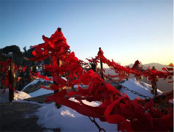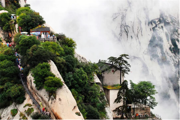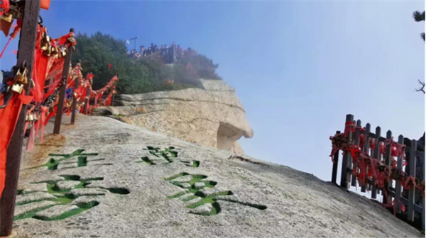 作为五岳之一,华山的岩石山峰每天都吸引着数百数千的游人。他们大多乘坐中巴,购买门票(保险费自愿),由索道直达北峰。在这里你可以从这些凿在石头上的道路到达其他四峰。一路上有寺庙可供祈愿,在铁链上系上刻好的铜锁,虽然是一个无神论的国家,中国人却是很迷信。