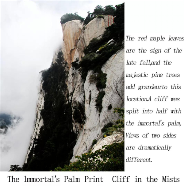 我独自一人出发,一段垂直的石隙,铁条插在岩石之中,道路向下延伸,风刮得很大,我双手麻木,死死地抓住铁链,慢慢向下挪动,脚下是一千米深的峡谷,这是一个恐惧与光荣交织的时刻。我走在栈道上,左右上下地欣赏着风景,周围大山巨大而孤独,我感觉自己就像是一个尘埃,真的太渺小了。冰屑落到头顶上,幸亏不是石块。我听到一群中国游客笑着从石隙中下来,我停下来照了几张相,要回去必须原路返回,这同样不容易,我很感谢地归还了手套,继续向其他山峰攀登。由于有安全保护措施,因此我不认为华山是“世界上最危险的道路”。