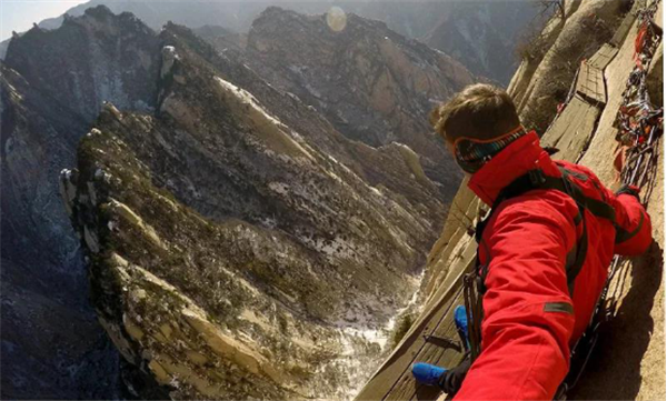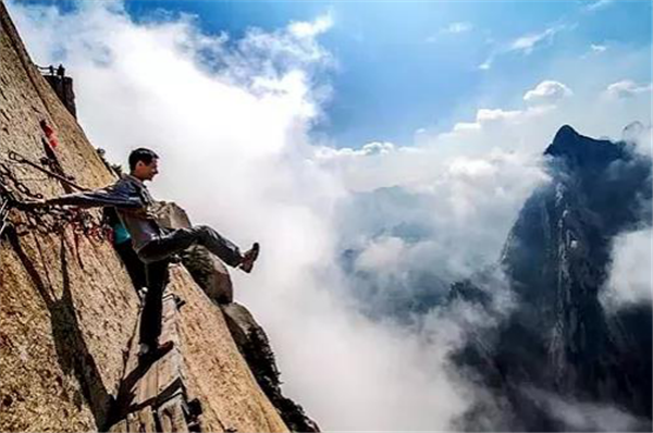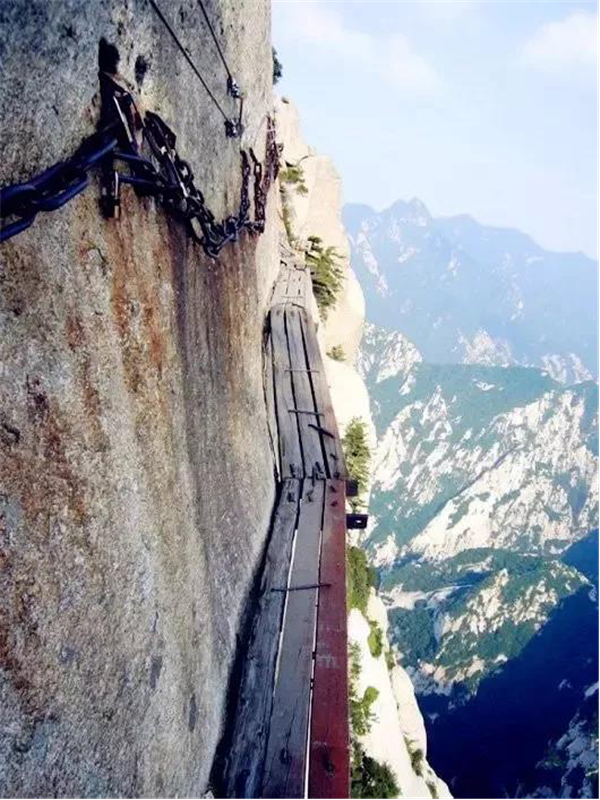 我站在华山两块窄窄的木板上,依靠铁钉楔入岩石作为支撑,我的脚下,是1000米的深谷,冰雪的路面很滑。我来华山旅游纯粹是因为在互联网上疯传的一张图片,也就是指“世界上最危险的登山路”那张。现在有了安全保护措施,实际上用不着担心危险了。恐惧慢慢涌上心头,头脑变得有些麻木。西安是中国的古城,在强盛朝代时期占有重要的历史地位。
