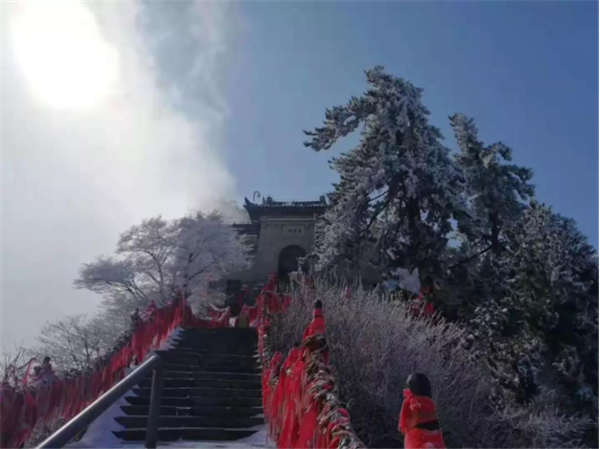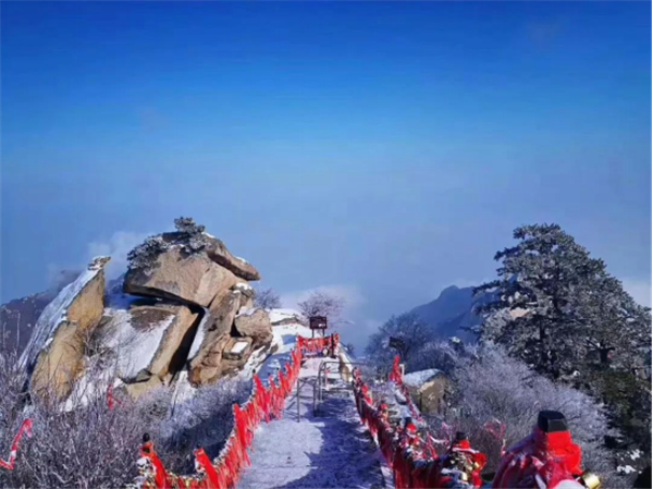 走进雪后的华山,你会觉得自己仿佛掉进了一个银装素裹的童话世界里,整个世界仿佛都被披上了一层白色婚纱。