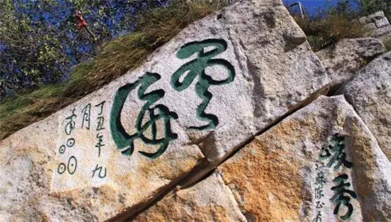 在苍龙岭上方平台边崖上刻有“云海”二字,落款就是“OO”题,不知“OO”是什么字?有人说是“昌”“明”二字,有人说是陕西关中方言“jiao”(意思就是太阳光很火辣),到底是什么字,至今既无稽可考,也无典可查,成为一大字谜。