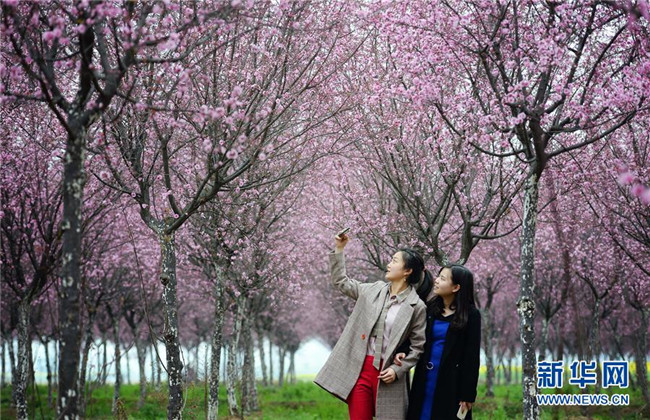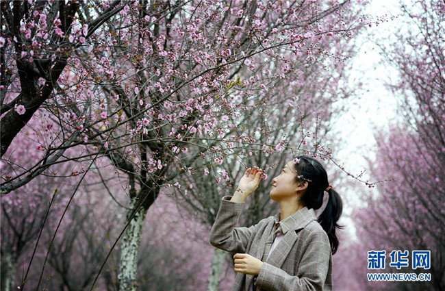 3月19日,游人在陕西勉县新街子镇观赏美人梅。近日,陕西省汉中市勉县新街子镇数十亩美人梅开放,吸引游人前来踏春赏花。 新华社记者 刘潇 摄