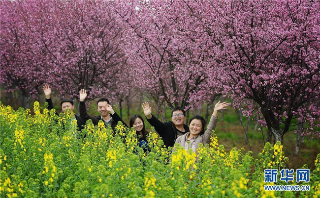 3月19日,游人在陕西勉县新街子镇踏春赏花。近日,陕西省汉中市勉县新街子镇数十亩美人梅开放,吸引游人前来踏春赏花。 新华社记者 刘潇 摄