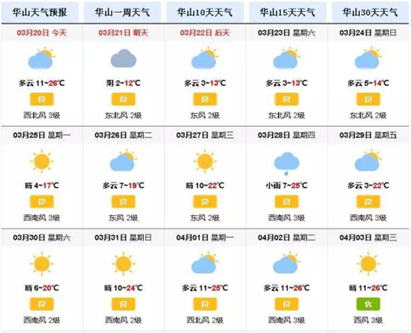 三月华山天气预报