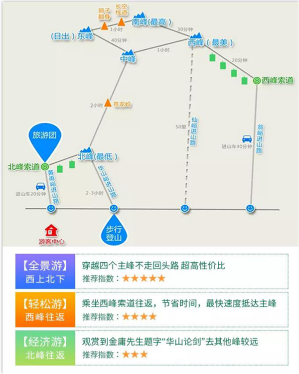 华山导览(索道线路)示意图