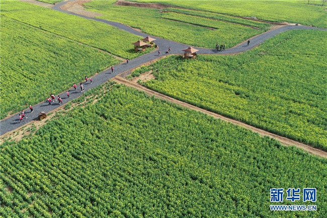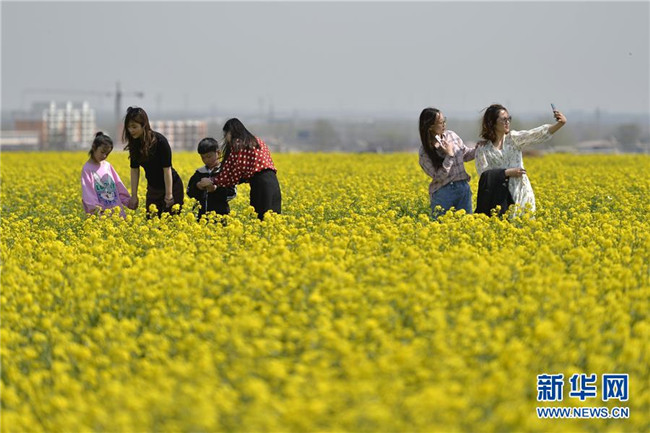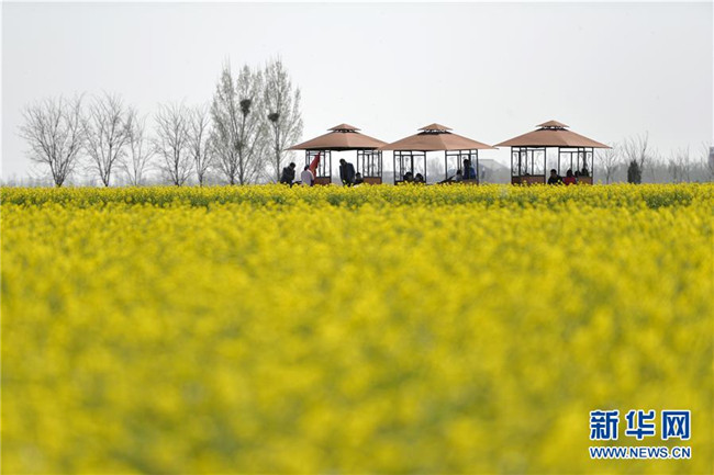 随着气温回升,河北省沙河市东葛泉村3000多亩油菜花盛开。