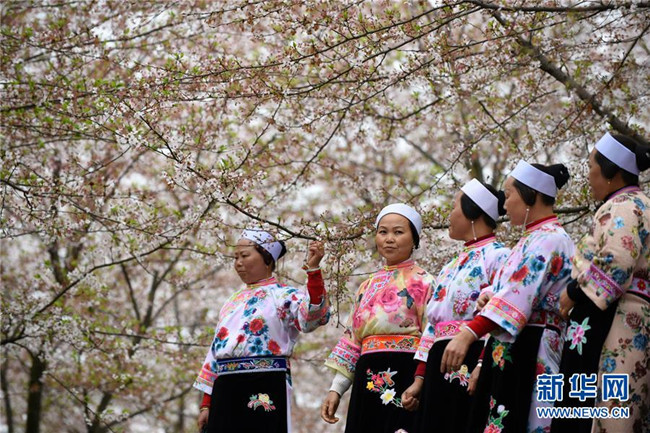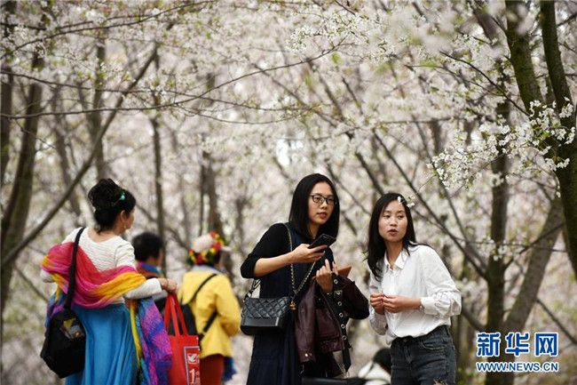 3月27日,游客在贵州省贵安新区樱花观光园赏花。新华社记者 杨文斌 摄