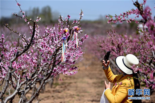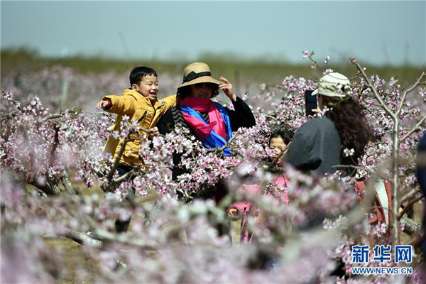 仲春时节,山东省临沂市郯城县马头镇“农家花园”里桃花正艳,吸引游客前来踏青赏花。近年来,郯城县农民通过流转土地、复耕开发等形式创办多个集赏花采摘、旅游观光、休闲娱乐为一体的花园式农场,带动当地乡村旅游发展。
