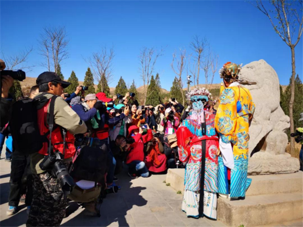 上午众多摄影爱好者们齐聚蒲城泰陵景区大唐梨园广场,进行以戏曲表演为主题一场的拍摄……