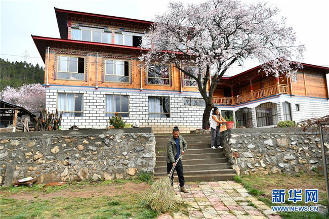4月2日,波密县古乡嘎朗村的德青旺姆(右)和弟弟多顿扎巴在打理自家民宿。 新华社记者 李鑫 摄