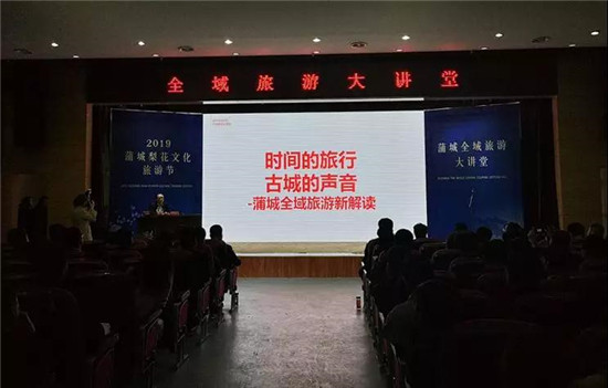 4月1日,第三届蒲城梨花文化旅游节系列活动“全域旅游大讲堂”在蒲城广电中心10楼演播厅开讲。特邀请专家学者贾云峰老师以授课的方式座谈古今、论道蒲城,深挖蒲城县域旅游资源,在大华山旅游圈的整合下,针对蒲城旅游资源,全面实施蒲城全域旅游定位、实操及营销,赢得自己的地位与影响力、市场占有率。