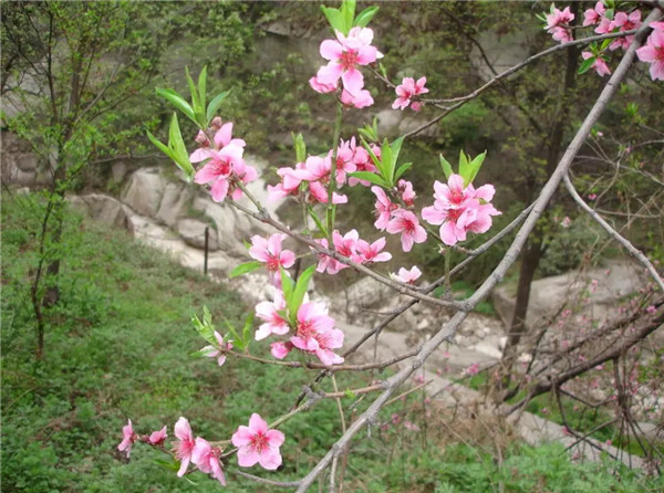 华山的桃花,主要集中在黄埔峪的峡谷里、路边上,星星点点开在半山的崖畔上,当春天来时,山中的灌木似乎还没有从冬季中醒来,而桃花却一下子盛开而来。将整个黄埔峪狭长的路径印成一段桃红色。
