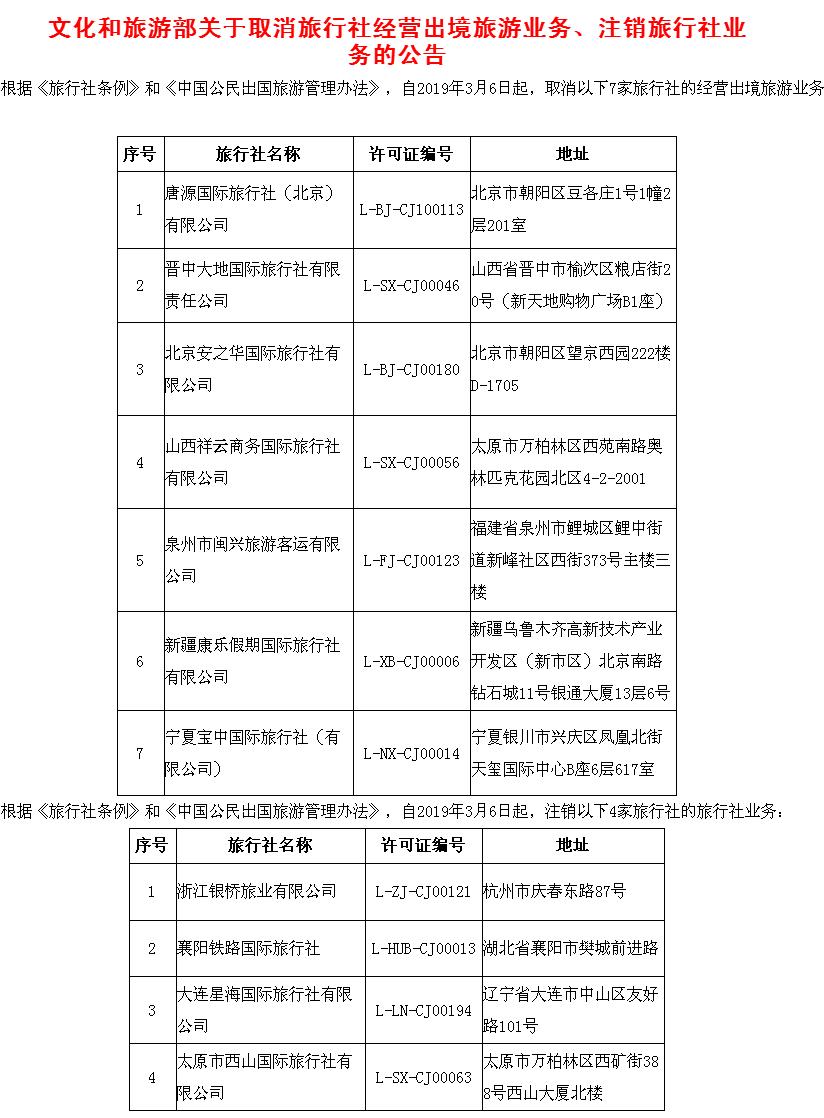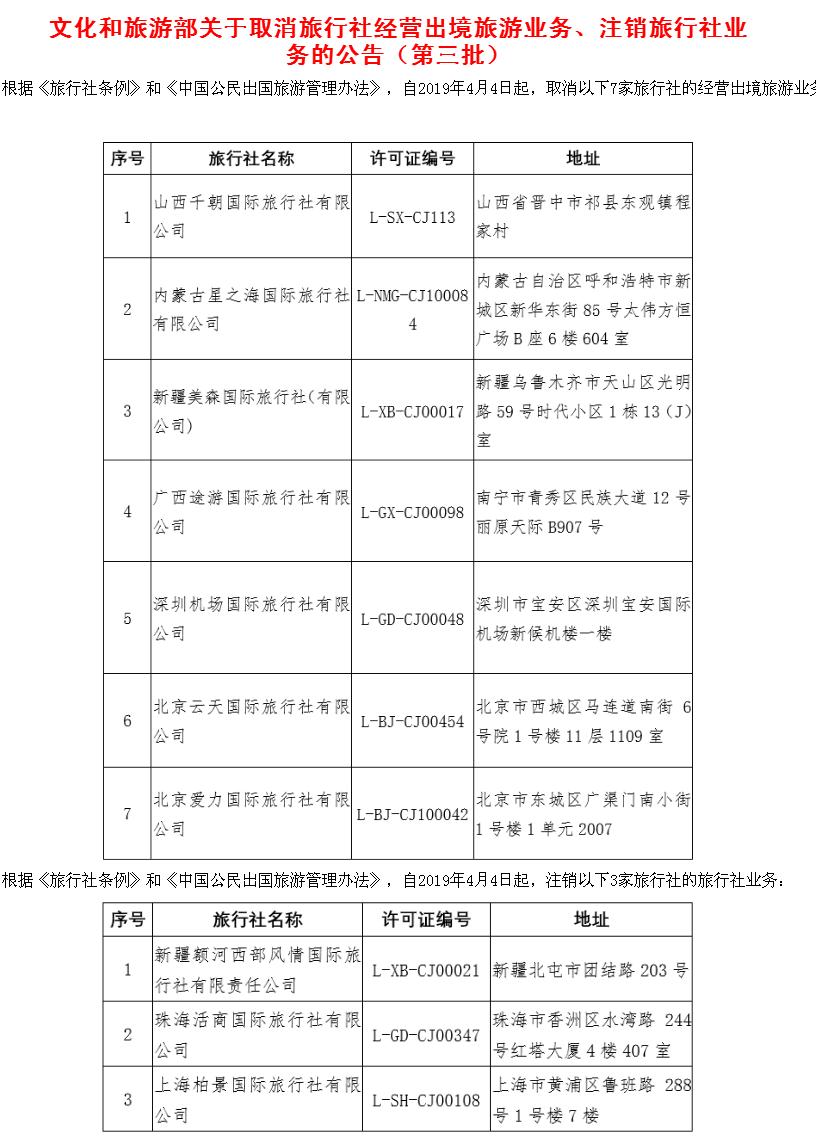 文化和旅游部近日发布公告,取消7家旅行社的经营出境旅游业务,注销3家旅行社的旅行社业务。记者注意到,截至目前,今年文化和旅游部共取消30家旅行社的出境游业务、注销11家旅行社的旅行社业务。戳图看详细黑名单。