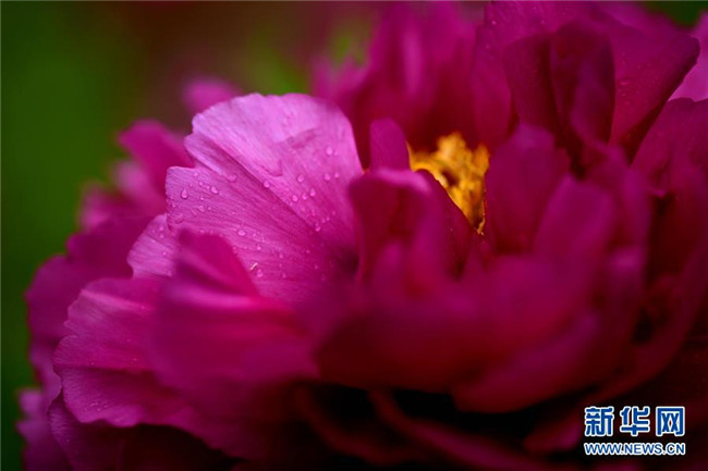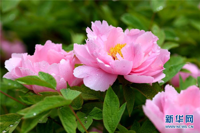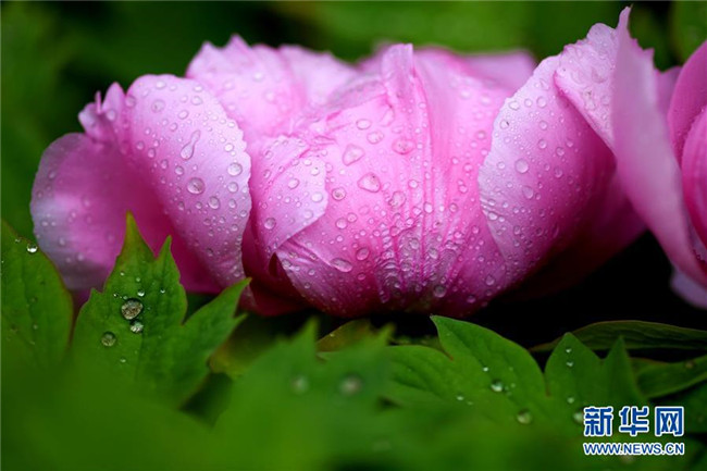 这是在石家庄市正定荣国府影视基地拍摄的牡丹花(4月13日摄)。时下,河北石家庄正定荣国府影视基地内的牡丹花次第开放,在春雨的滋润下显得格外晶莹剔透、美丽娇艳。 新华社发(陈其保 摄)