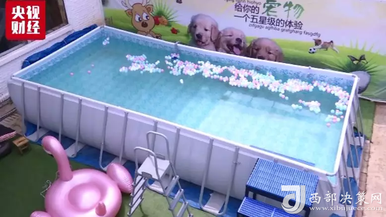 俱乐部的宠物泳池,配备了专门的救生员,宠物救生衣,以及昂贵的池水净化器,游一次需要80元。