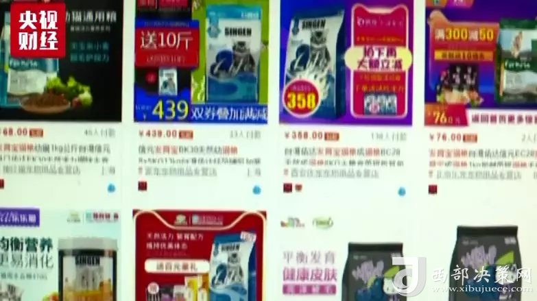 在网购平台搜索宠物日常粮食用品,商品数量可达上百页。销量最好的猫粮,月销售量达到6.5万笔。