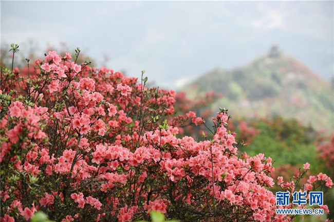 这是4月25日在贵州省丹寨县龙泉山景区拍摄的映山红。暮春时节,位于贵州省黔东南苗族侗族自治州丹寨县龙泉山景区的映山红陆续开放,红遍山岭,吸引众多游客前来赏花观光。 新华社记者 杨文斌 摄