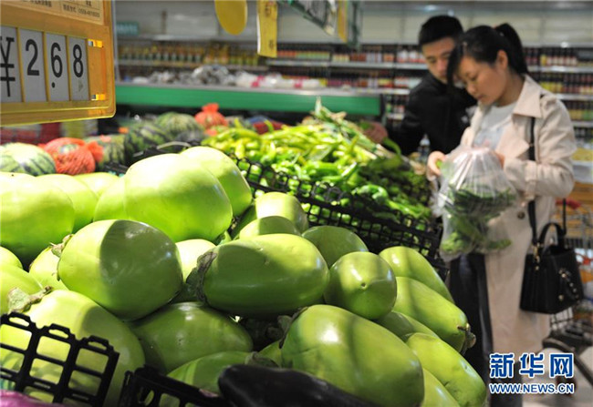 5月9日,顾客在河北省邯郸市水厂路一家超市选购蔬菜。新华社发(王九忠 摄)