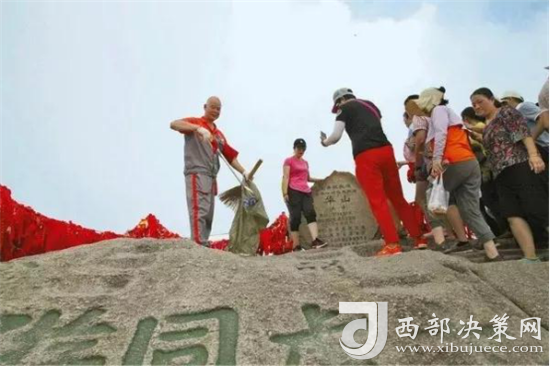 当年迈或行动不便的游客留守山下遇到身体不适时,在这尴尬时刻,不怕脏不怕累,用博爱谱写奉献歌是我们华山人的家风。